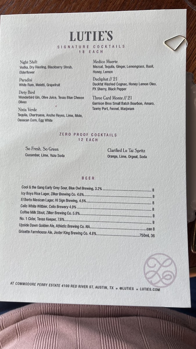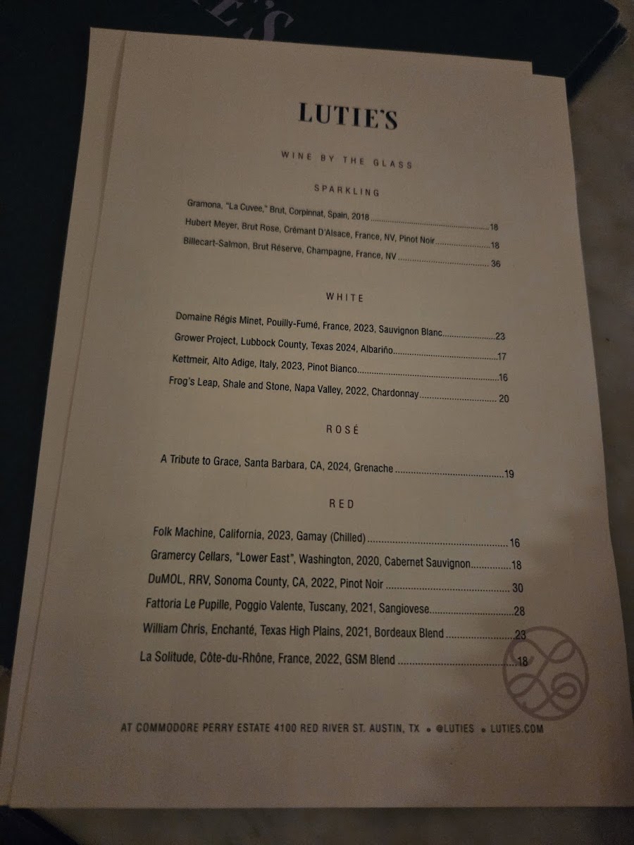 Expect a variety of dishes that highlight fresh, seasonal ingredients with a subtle nod to both Texas flavors and French influences. From light starters like the Scallop Crudo with its bright, crisp accents to more substantial options like Shrimp and Grits or Duck Breast, the menu encourages diners to explore a range of textures and tastes in a relaxed yet polished atmosphere.